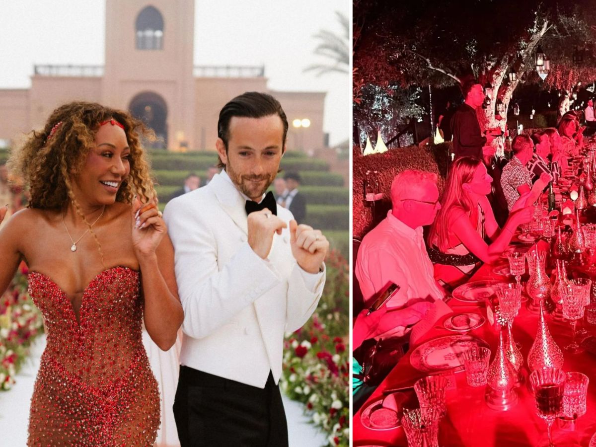 In London, Mel B wore a dreamy ivory gown, complete with pearls and a cathedral-length veil. But in Morocco? She turned up the heat. Walking into the celebration in a custom red dress glittering with hand-placed crystals, she made it clear: this ceremony was about celebrating her strength, her story, and the vibrant love she shares with Rory.