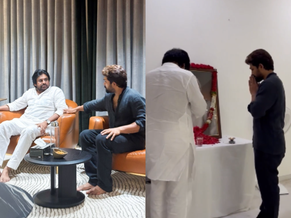 One widely shared online widely is a video of Pawan Kalyan, wearing a white kurta-pyjama, arriving at the house of Allu Arjun. In the video, he is seen hugging an emotional Allu Arjun before being taken to the photo of the late Kanakaratnam, where he paid his respects.