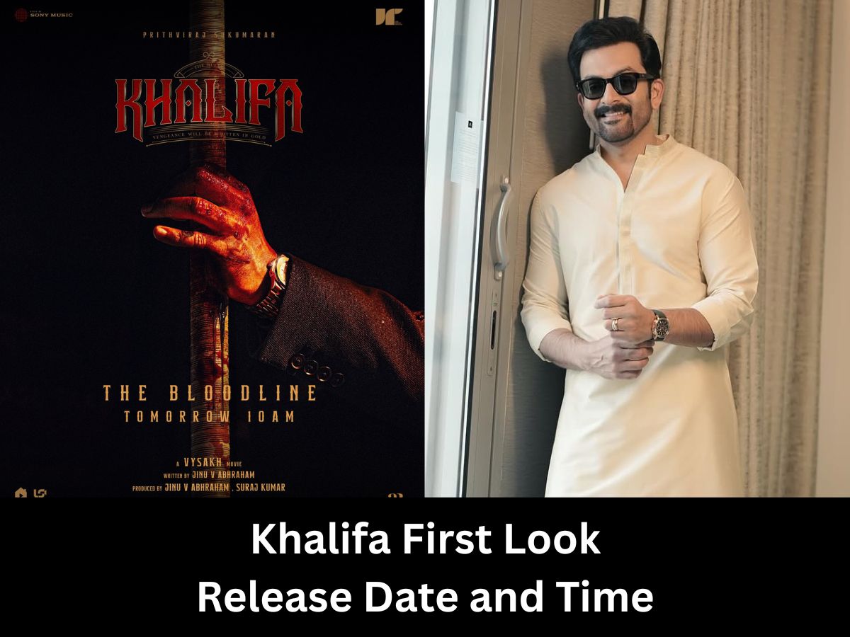 On his socials, Prithviraj Sukumaran, along with the team of Khalifa, shared the poster of the movie, announcing its first look to be released on October 16th at 10:00 AM on his 42nd birthday.