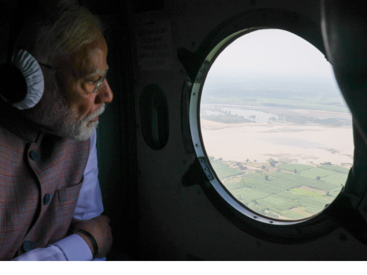 Prime Minister Narendra Modi conducted an aerial inspection of the flood-hit districts of Himachal Pradesh and Punjab to asses the degree of damage due to the recent cloudbursts, heavy rains, and landslides. His one-day visit focused on the central government’s narrative to extending all-round relief and rehabilitation efforts to assist the affected communities to pick up the pieces and rebuild.