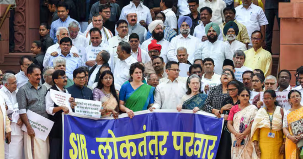 The protest at the Parliament’s Makar Dwar was led by Congress Parliamentary Party chairperson Sonia Gandhi and MP Priyanka Gandhi Vadra, along with other INDIA bloc leaders. Slogans such as “Save democracy” and “Stop vote-bandi” were raised to condemn what the opposition termed an “undemocratic voter disenfranchisement” drive under the guise of electoral roll revision.
