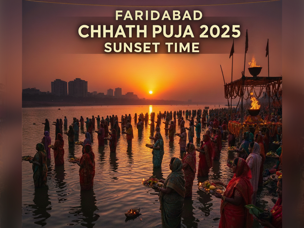 The sunset (Suryast) in Faridabad during Chhath Puja 2025 is at 5:41 PM on October 27, 2025, which is the perfect time for Sandhya Arghya. Devotees are advised to reach the ghats well in advance to perform the rituals smoothly.