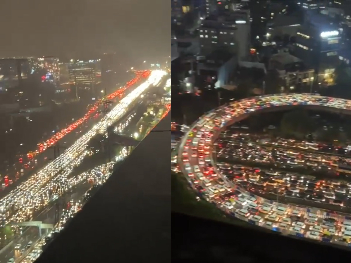 Huge traffic jam on Delhi-Jaipur Highway. Thousands of vehicles stuck. People trapped for hours as rain stops the city. pic.twitter.com/OBGfebIV0O
