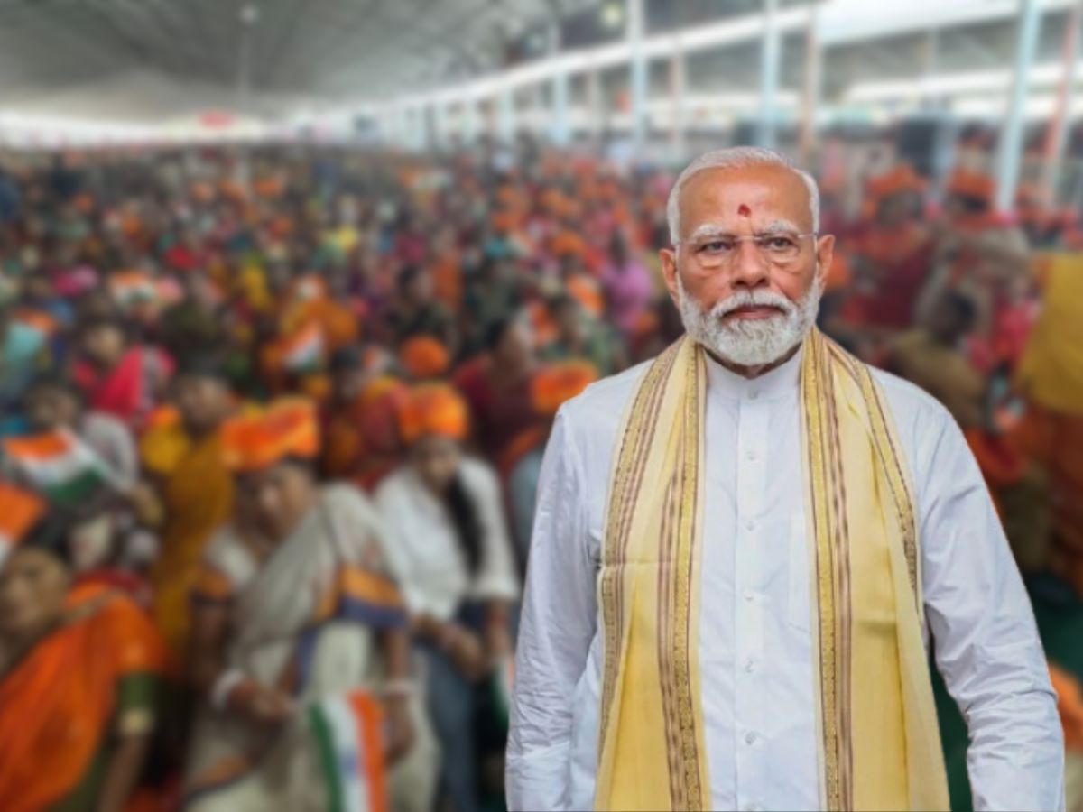 Upon reaching Gaya Ji, PM Modi was Union Minister Jitan Ram Majhi felicitated him. He was wholeheartedly greeted by thousands of people. The crowd cheered as the prime minister was welcomed on stage. The gathering was seen waving Indian National flags.