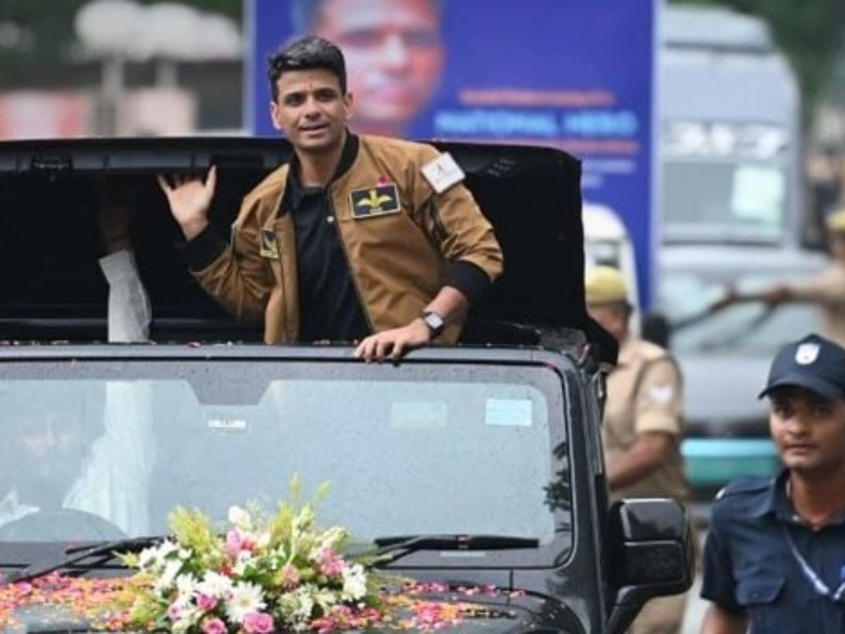 Defense Minister Rajnath Singh also felicitated Shukla on Sundayalong with his fellow astronauts Group Captain P.V. Nair, Group Captain Ajit Krishnan, and Group Captain Angad Pratap.
