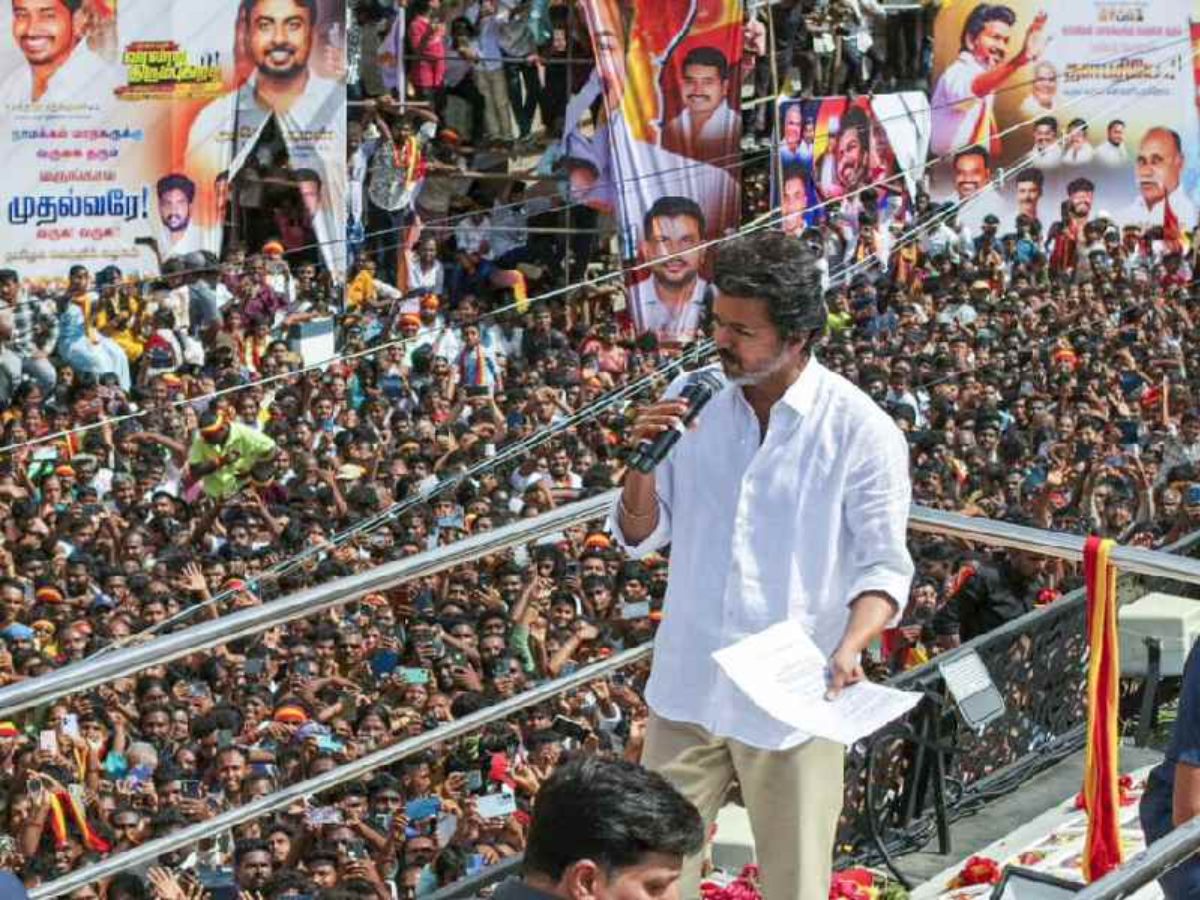 Thousands gathered for the arrival of Vijay, but the situation turned worse when the crowd began swelling beyond controls and People began collapsing, according to local media and eyewitnesses due to suffocation, heat and lack of space more people fainted, causing complete chaos. Images and videos from the scene show a distressed Vijay atop a campaign vehicle throwing water bottles to the crowd while calling for police assistance as people began to lose consciousness.