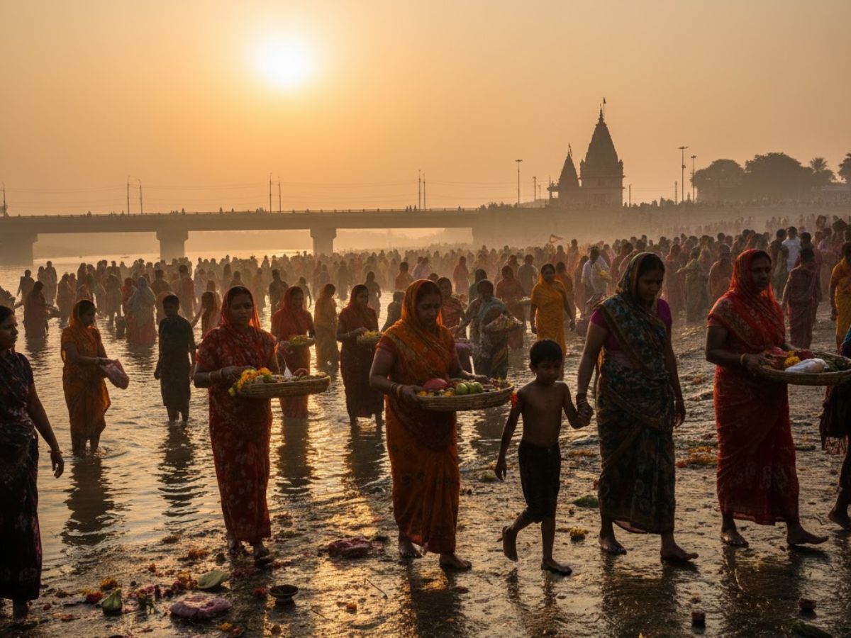 The pivotal Sandhya Arghya will be observed on October 27. The sunset time in Gorakhpur, Uttar Pradesh, for Monday, October 27, 2025, is at approximately 5:46 p.m. Devotees will gather at water bodies to make their offerings at this precise time.