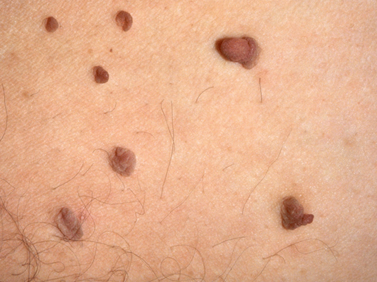 Skin tags are small, soft skin growths that hang off the body. They are harmless and typically painless. They most commonly occur on the neck, eyelids, armpits, and under the breasts.