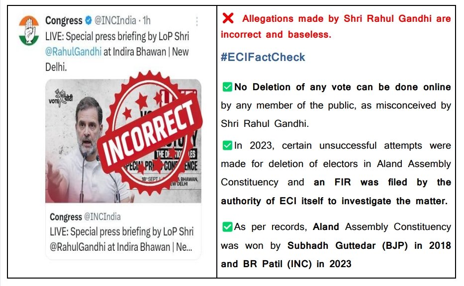 ❌Allegations made by Shri Rahul Gandhi are incorrect and baseless.#ECIFactCheck
