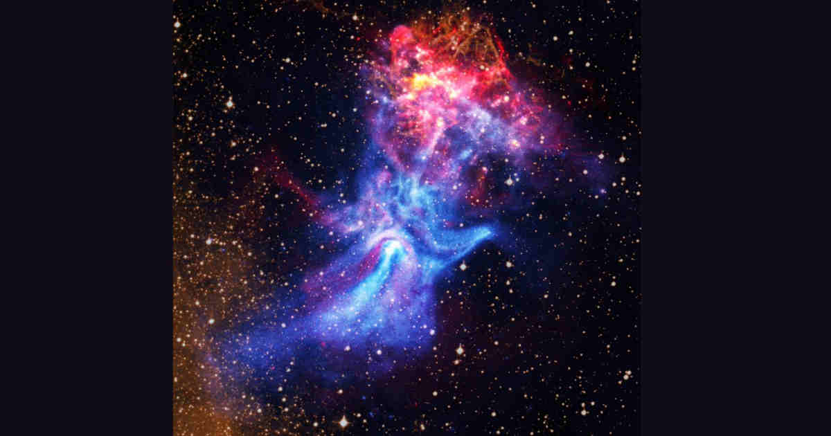 NASA has released a breathtaking new image of what scientists describe as a massive “cosmic hand” stretching across 150 light-years. The structure, created by powerful magnetic forces from a pulsar, looks remarkably like a human hand reaching through space.