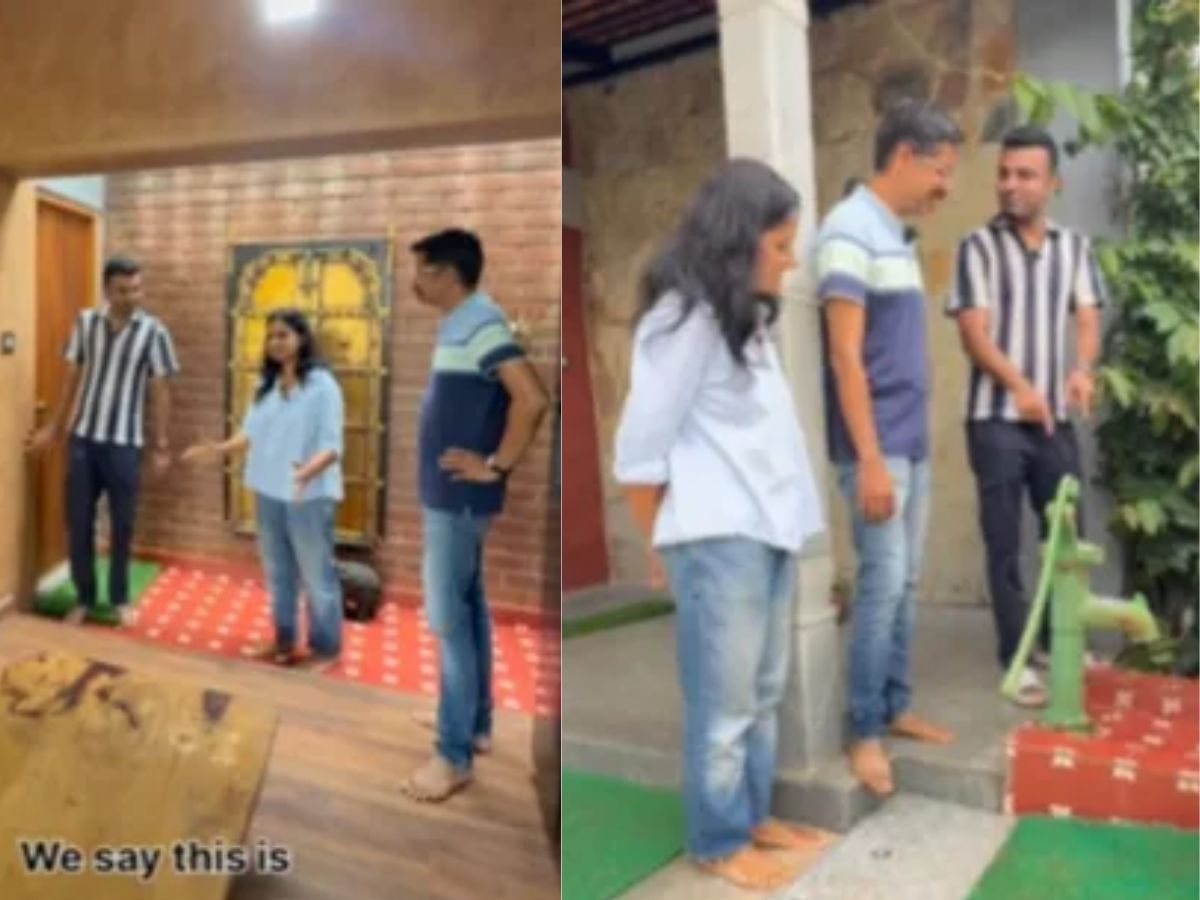 The video begins as Saraswat asks the couple if they own the house. When they respond ‘yes’ to the question, the influencer asks for a tour. The couple agrees happily, saying, “Welcome to our home. ‘Satya Chitt’, means true consciousness. This is the house which we built keeping in mind that it enhances our consciousness.”