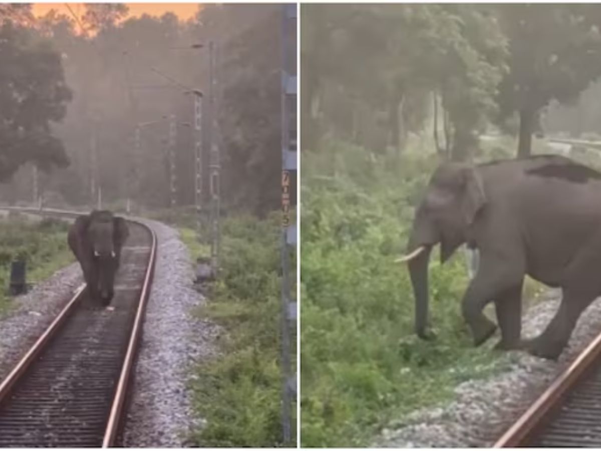 A seemingly risky situation turned beautiful when a train stopped for an elephant to cross safely and return unharmed to the forest. The incident was recorded and shared online by the Indian Forest Service (IFS) officer Parveen Kaswan.