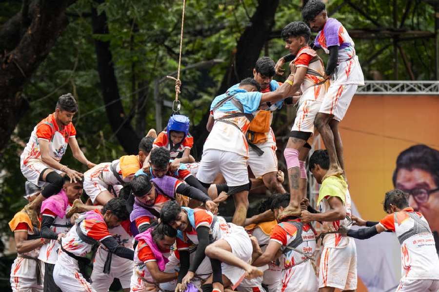 Dahi Handi, part of Janmashtami, involves teams forming tall pyramids to break an earthen pot filled with curd, symbolizing Lord Krishna’s childhood tales