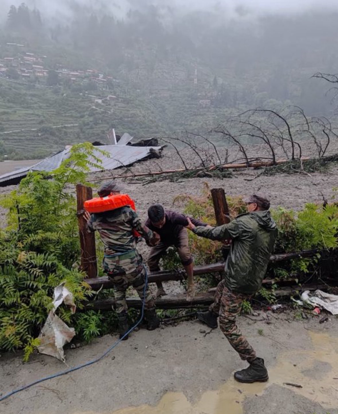 The village lies just 4 km from the Indian Army camp at Harshil – both sites were impacted by the deluge