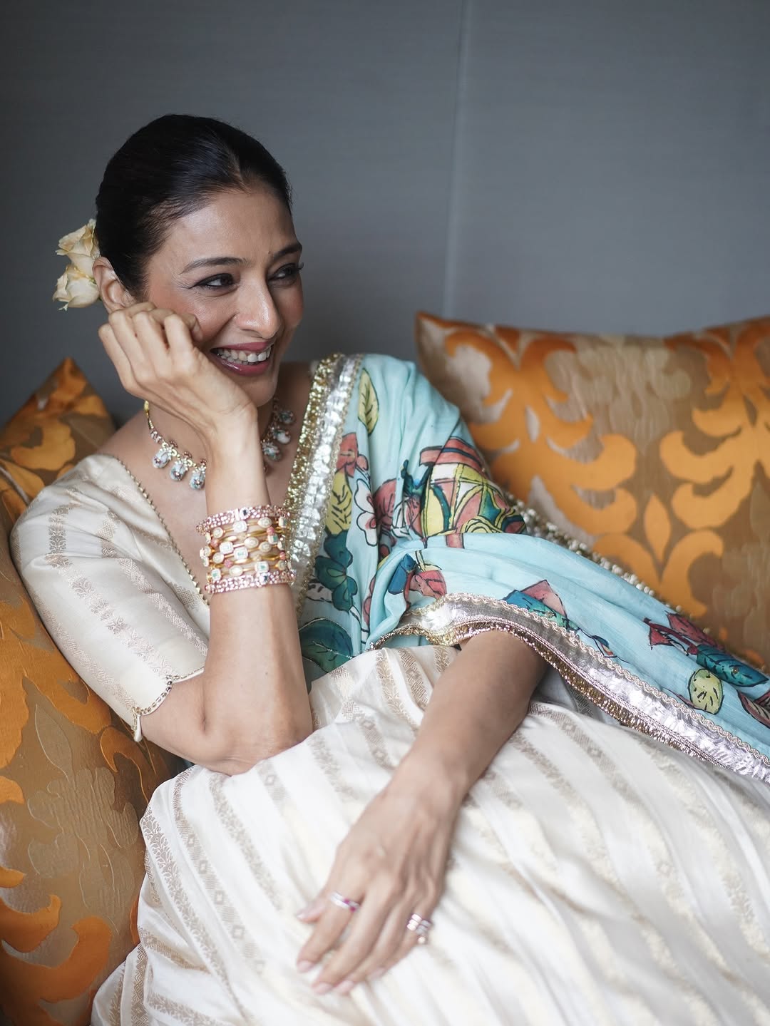 Ivory Elegance: Tabu’s Lehenga Look is Pure Fashion PoetryIvory Elegance: Tabu’s Lehenga Look is Pure Fashion PoetryTabu turns heads in an ivory silk lehenga paired with a statement Kalamkari dupattaA ₹52K Benarasi Chanderi lehenga with soft zari stripes adds quiet opulenceHer hand-painted dupatta titled “Birds Outside Cages” blends art and symbolismMinimal jewelry, a rose bun and soft glam makeup let the outfit shineWarm backdrops and pastel tones frame Tabu in serene, striking contrastEmbrace crafted details, soft palettes and elegant restraint for timeless appeal