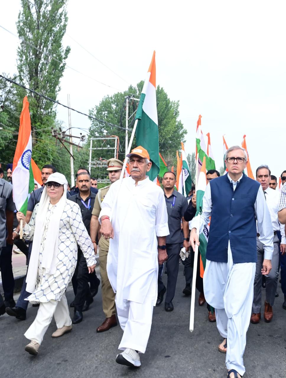 Srinagar witnessed a historic ‘Tiranga Rally’ led by LG Manoj Sinha & CM Omar Abdullah ahead of Independence Day celebrations