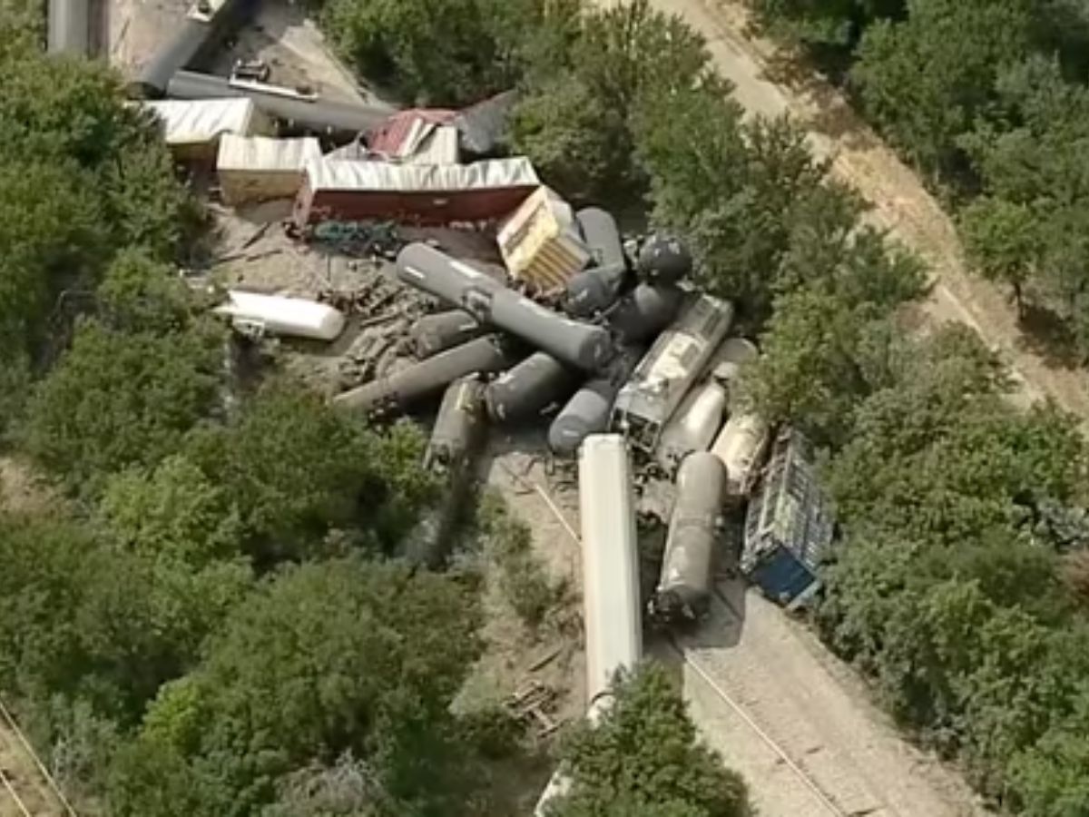 Around 35 Union Pacific train cars derailed near Gordon, Texas, possibly carrying hazardous materials. No leaks, injuries, or evacuations occurred. Emergency crews contained small grass fires, and officials confirmed the situation was stable but under control.