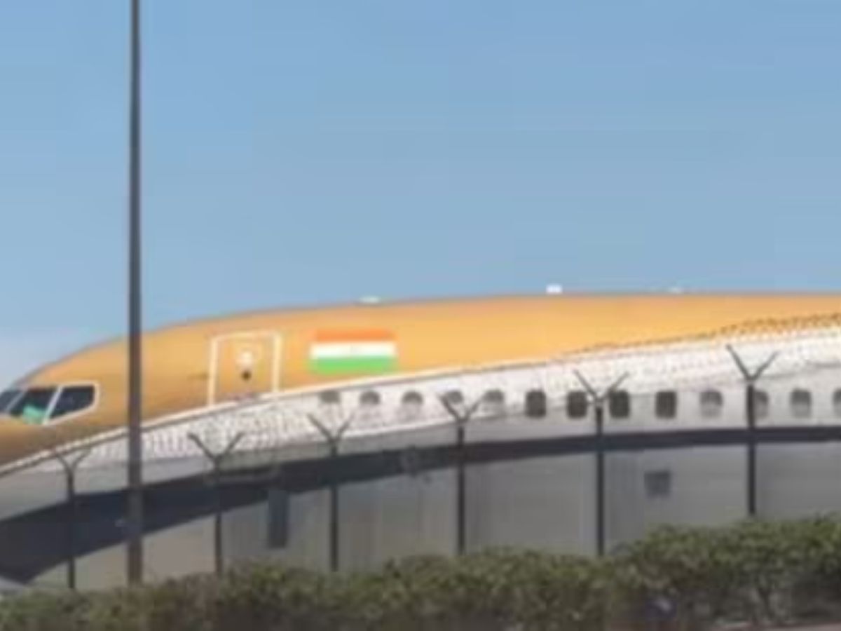 A gold-blue-white Boeing jet with Indian tricolor on its fuselage landed at the Los Angeles International Airport. A video of this uniquely colored jet has gone viral on social media, stirring curiosity about its owner.